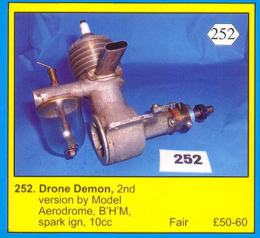 Also wrong is the tank and possibly the tanktop in this example taken from the auction catalog for Peter Fisher's collection. No photograph of a Demon appears in his book, but it is possible that this was the engine that convinced him that a second model with a steel liner existed. The paragraph in the book describing the engine makes mention of a contemporary reproduction Drome Demon made especially for collectors. If so, these are even more rare than the originals as none of the authorities in our group have ever heard of one, let alone see one! If any reader has such a beast, we'd welcome a photograph.