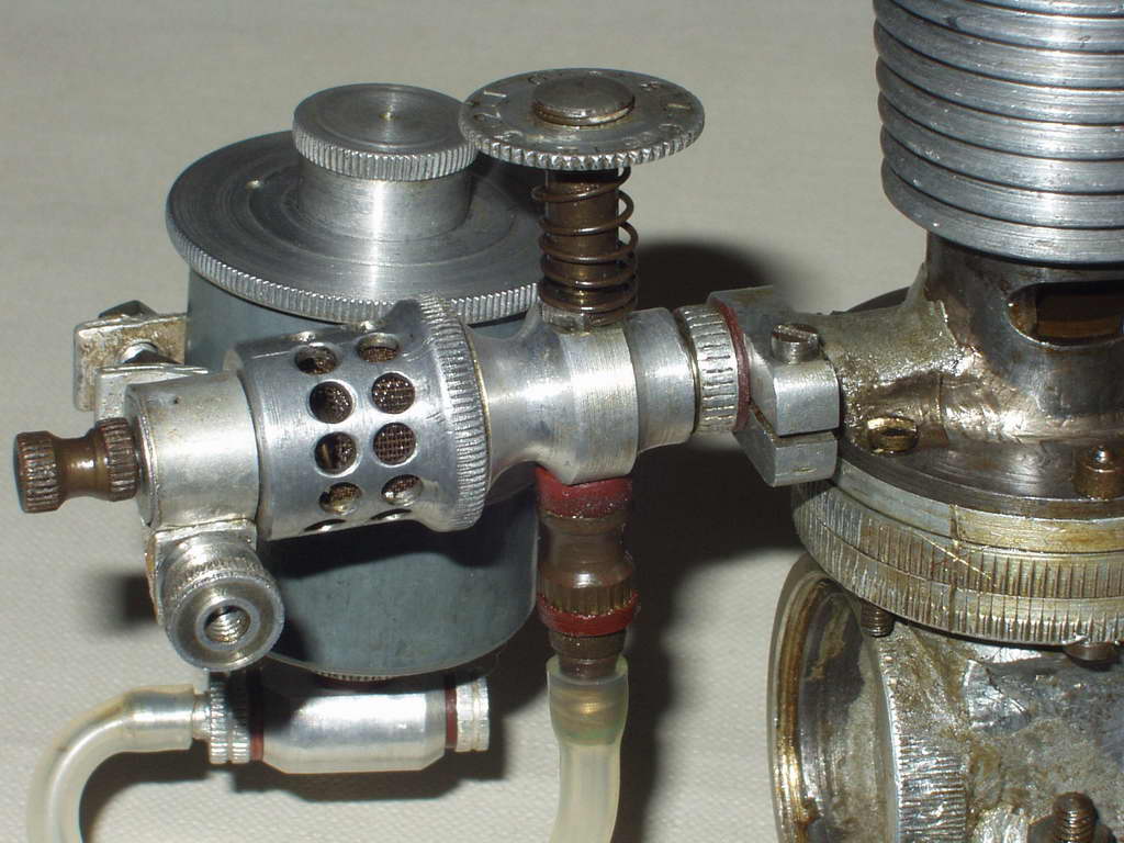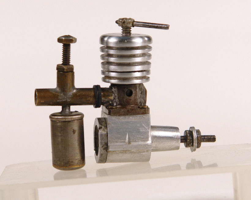 No doubt about it being worth adding, Richard, and while I doubt we'll ever identify the builder, there are a few things worth noting. My guess is it is modelled on the Sparey 5cc, and there appears to be an ETW influence to the tank and carby. Unusual features are the mix of fasteners on the cylinder base, and the way the backplate seems to screw into the case with what looks like a knurled lock ring, providing an adjustable case volume--perhaps not intentionally. Some of the work is, to be kind, a bit crude. But the numbers stamped on the needle valve knob and around the comp screw are quite nicely done, as are parts of the carby assembly. And there appear to be two substantial spacers between case and cylinder flange, indicating earnest attempts at something! So, not attractive, but most unusual.