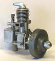 You can be sure this engine never ran, but I have to admire the work that went into the really tiny cylinder assembly with it's soldered on inlet fitting and bypass cover. The crankcase appears to have been partially turned and then simply filed to shape by someone who really knew how to use a file. The prop drive is simply two nuts and a washer, possibly because they intended to use a sheet metal prop likt the ones with the Bambi or our Infant engines. I cleaned up the fins where someone had used pliers on them, but other that that and a general cleaning, this is the shape it was in as received. Only a curiousity, but an interesting one. I wish I knew who made it and when. It looks like a Sparey egg or something!