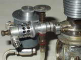 Most working parts are numbered, though no numbers match. The glow-plug fitted is an unknown and probably early design, being screwed rather than pressed together. While I was puzzling over all this, it did occur to me that the engine might be an early Czech design, possibly from Busek. So I looked it up in Jiri Linka's "Czech Model Engines" and found it on p90.